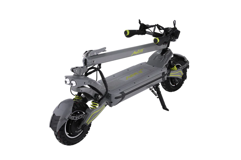 ה-MUKUTA 10 DUAL PLUS הוא הקורקינט החשמלי האולטימטיבי לשטח ולעיר – דגם עוצמתי במיוחד עם שני מנועים וסוללת ליתיום 60V/21Ah מבית LG. מספק טווח נסיעה של עד 60 ק״מ, עם מערכת בלמים הידראולית NUTT מקצועית, בולמי זעזועים קדמיים ואחוריים מתכווננים, ותצוגת לוח שעונים חכמה וברורה. שלדת אלומיניום תעופתי 6061/6082 מעניקה חוזק מקסימלי עם עיצוב חדשני וצביעה מיוחדת. כולל מערכת נעילת NFC, תאורת LED היקפית, איתותים, צופר חשמלי, כפתורי מצבים לרכיבה במוד DDM, ומערכת הגנה מתקדמת למניעת התחממות. חוויית רכיבה רמה אחת מעל כולם – בטיחות, כוח ונוחות ללא פשרות.
