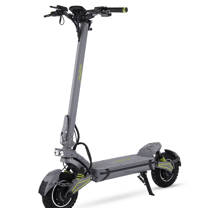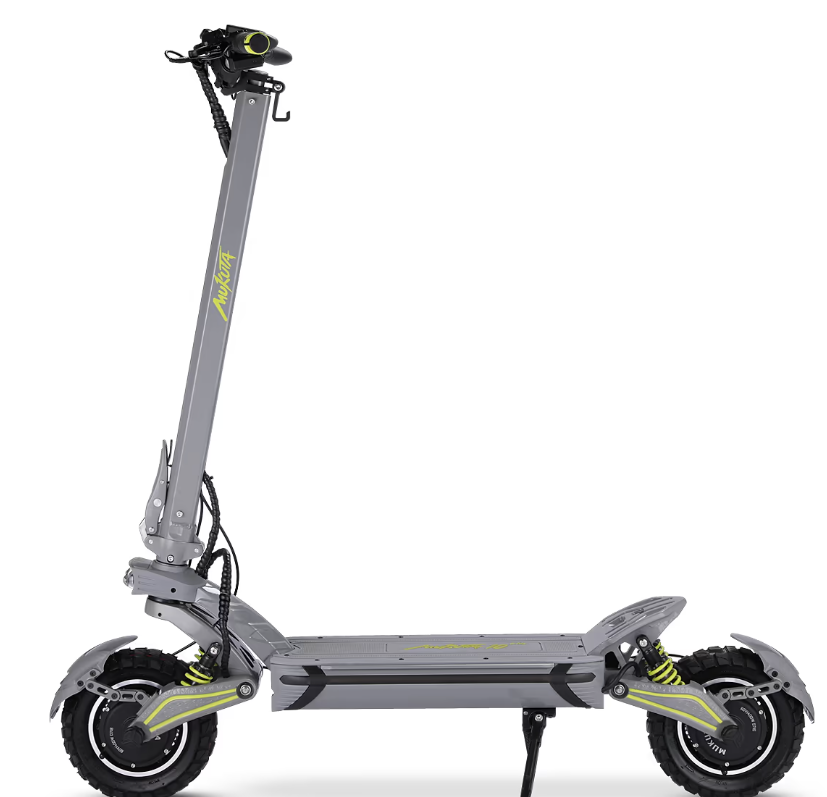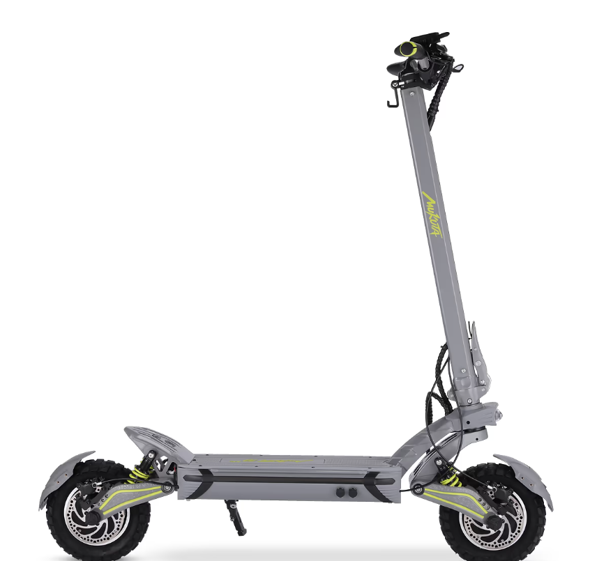 ה-MUKUTA 10 PLUS הוא קורקינט חשמלי עוצמתי עם ביצועים מעולים ועיצוב מרשים. מצויד בסוללה חזקה 52V/18Ah לטווח נסיעה של עד 50 ק״מ, מערכת בלמים הידראולית על שמן, ובולמי זעזועים קדמיים ואחוריים לשיכוך מלא ולנוחות רכיבה מושלמת. שלדת אלומיניום תעופתי מספקת יציבות ועמידות, עם צמיגים רחבים ללא פנימית בגודל 10×3 אינץ׳. כולל תאורה קדמית ואחורית חזקה, מערכת איתותים וצופר חשמלי, ונעילת ציפ NFC מתקדמת לאבטחה מירבית. מנגנון קיפול קל מאפשר נשיאה ואחסון פשוטים. מתאים לרוכבים עד משקל 120 ק״ג, ומגיע עם אחריות יבואן רשמי ושירות מלא.