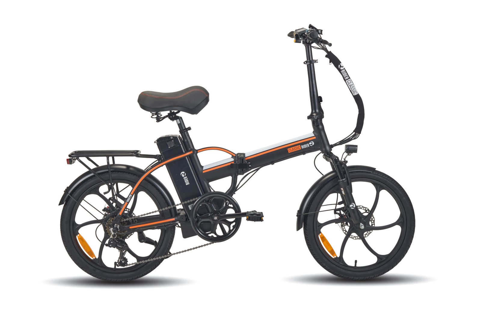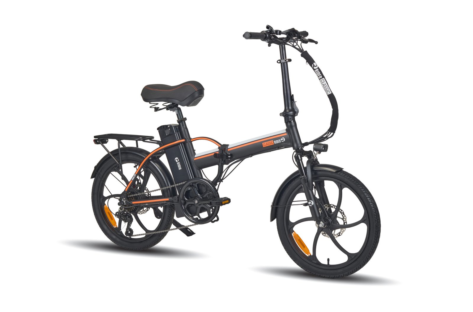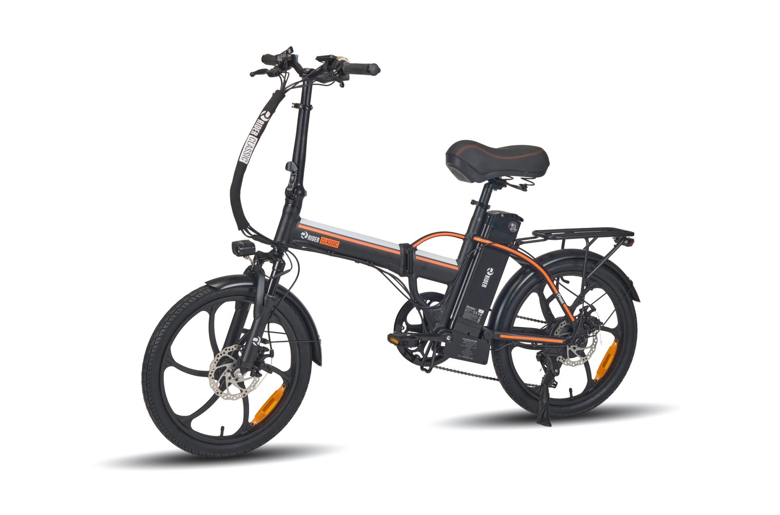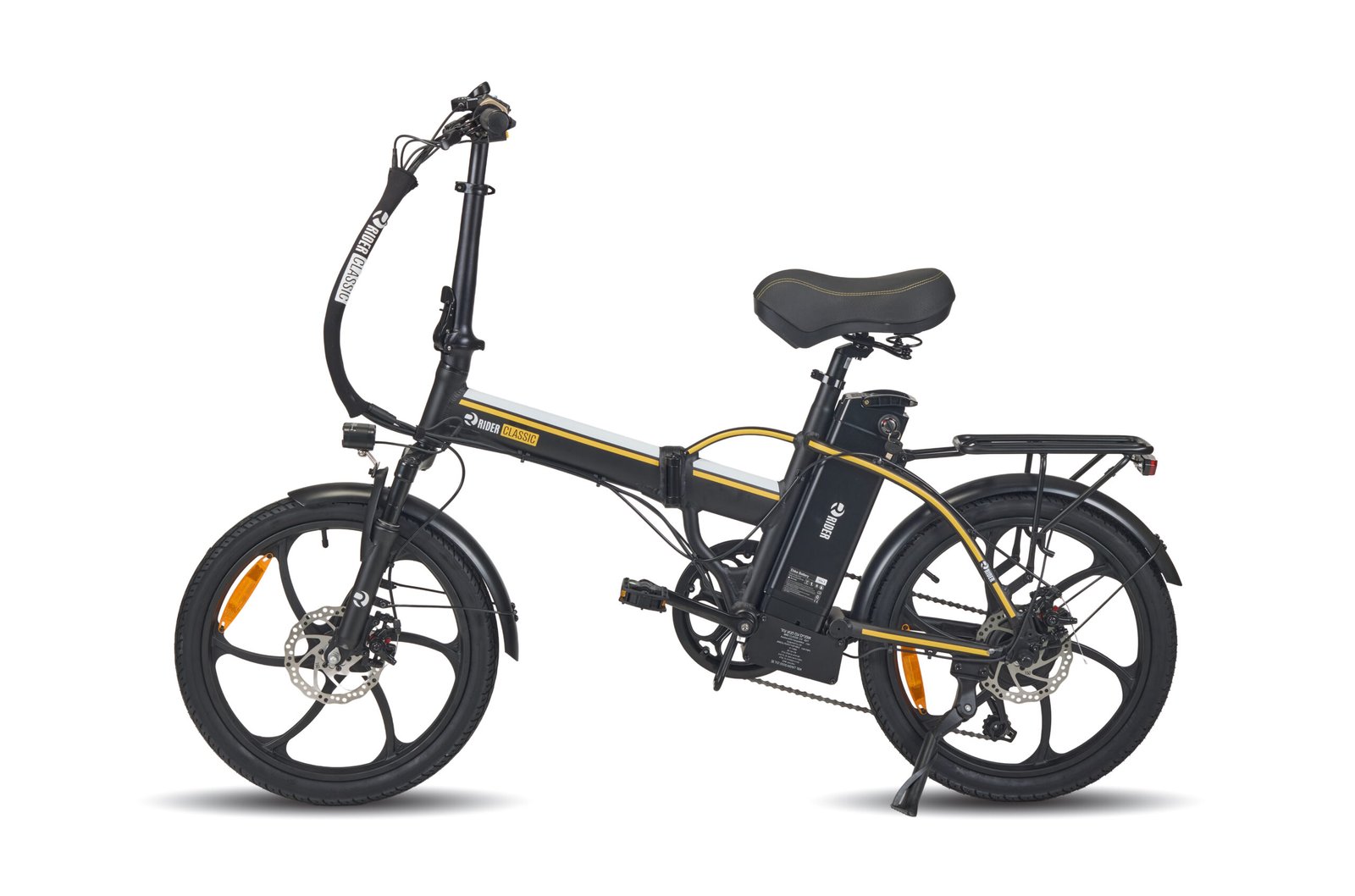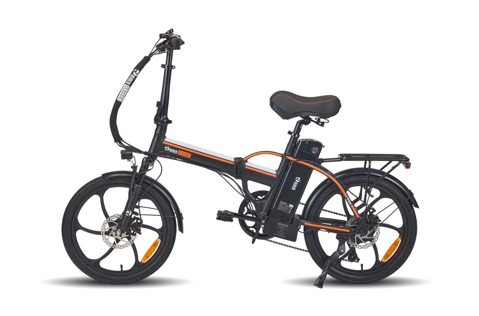 אופניים חשמליים ריידר קלאסיק עם גלגלי 20 אינץ', שלדת אלומיניום קלה, מנוע 250W וסוללה 48V. כוללים צג דיגיטלי, בלמי דיסק קדמיים ואחוריים, וטווח נסיעה עד 45 ק"מ. מתאימים לרכיבה בעיר ובשבילים.