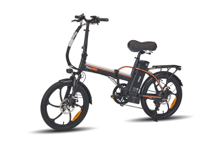 אופניים חשמליים עם סוללת 48V, מנוע 250W, גלגלי 20 אינץ' ובלמים דיסקיים קדמיים ואחוריים.